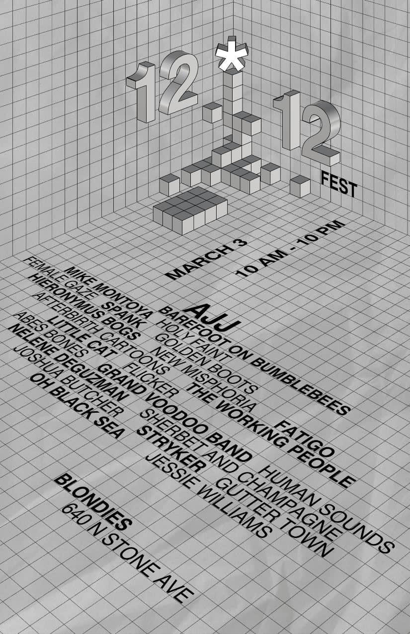 12*12 is a festival in Tucson, AZ filled with local musicians showcasing songwriting in its many stages. With 12 solo acts and 12 full bands, the event hopes to bring together music lovers, musicians, artists, and local creatives to support their growth, exposure, and community as a whole.